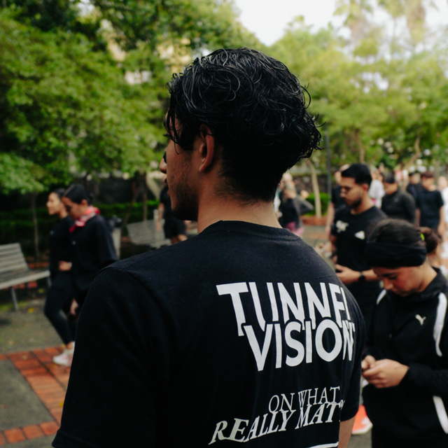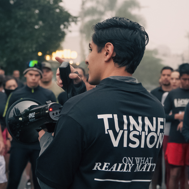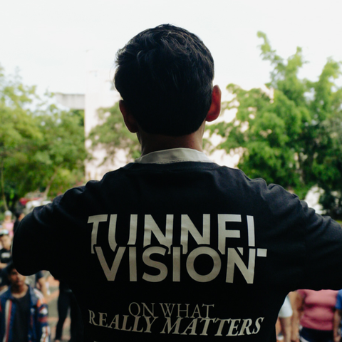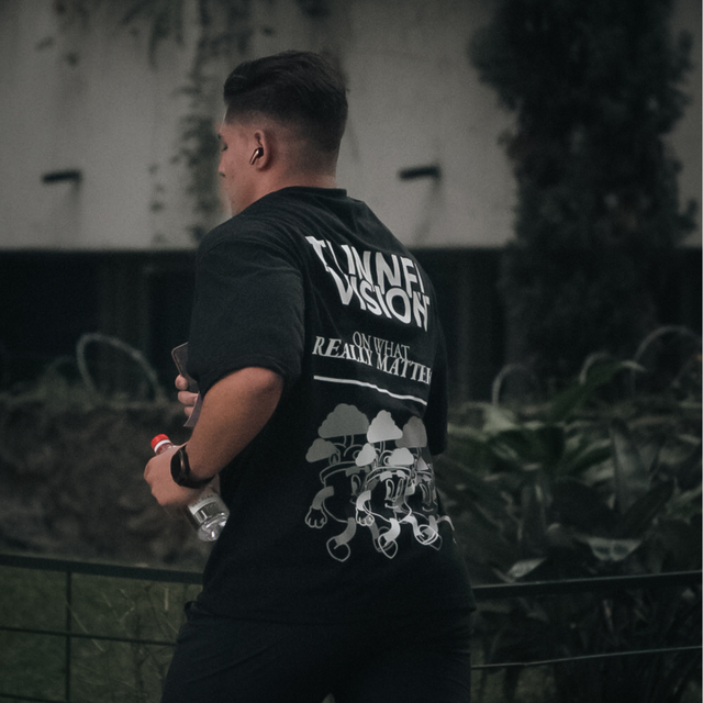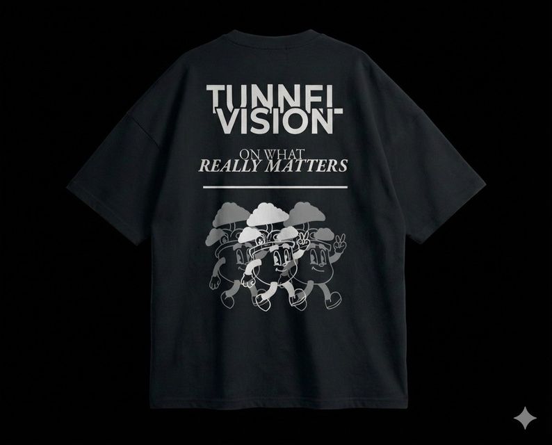 Esta playera se inspira en la analogía de la Visión de Túnel o Tunnel Vision: la capacidad de fijar un objetivo con tanta claridad y determinación que nada más importa. Nuestro mensaje, sin embargo, dirige ese enfoque a lo verdaderamente significativo.